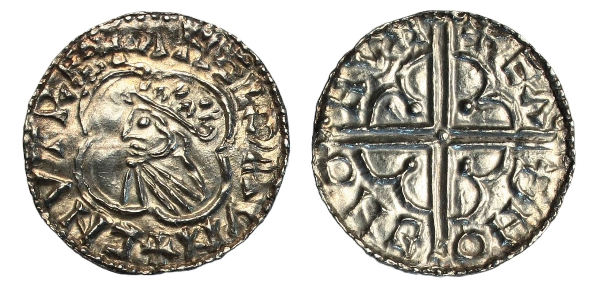 Penny, quatrefoil type, Huntingdon, moneyer Eadnoth, draped bust left within quatrefoil, legend commences at 6 o'clock, +CNVT REX ΛNGLORVM:, rev. long voided cross over quatrefoil with pellet cusps and pellet centre, +EΛDNOÐ MO HVN, 1.09g, (SCBC 1157, N.781). Double struck to obverse legend, toned and good very fine