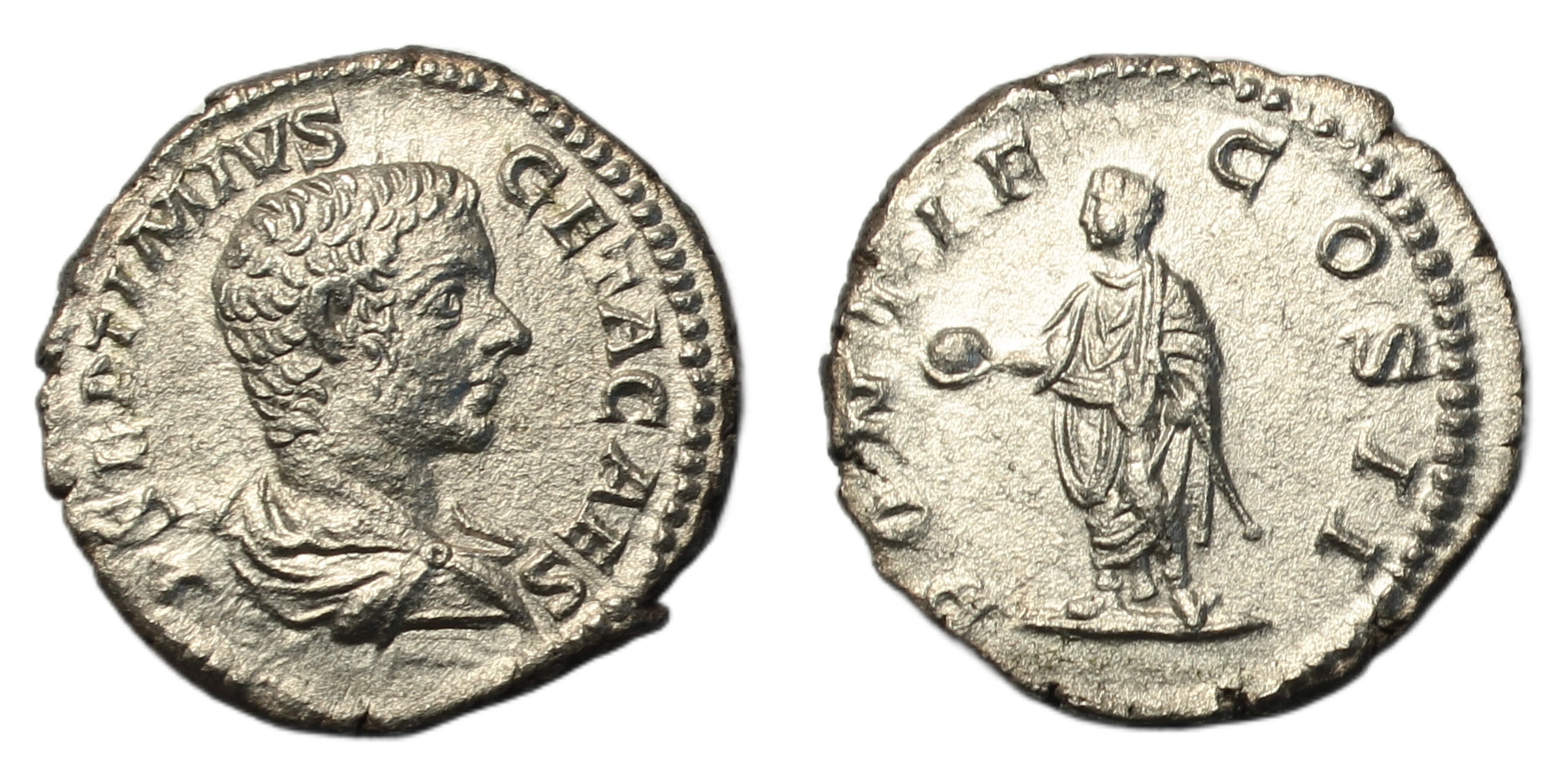 Denarius, Rome, struck under Septimius and Caracalla, bareheaded and draped bust right, rev. Geta standing left, holding globe and parazonium, 2.92g, (RSC 117, RIC IV 61a). Minor porosity but sharp and extremely fine