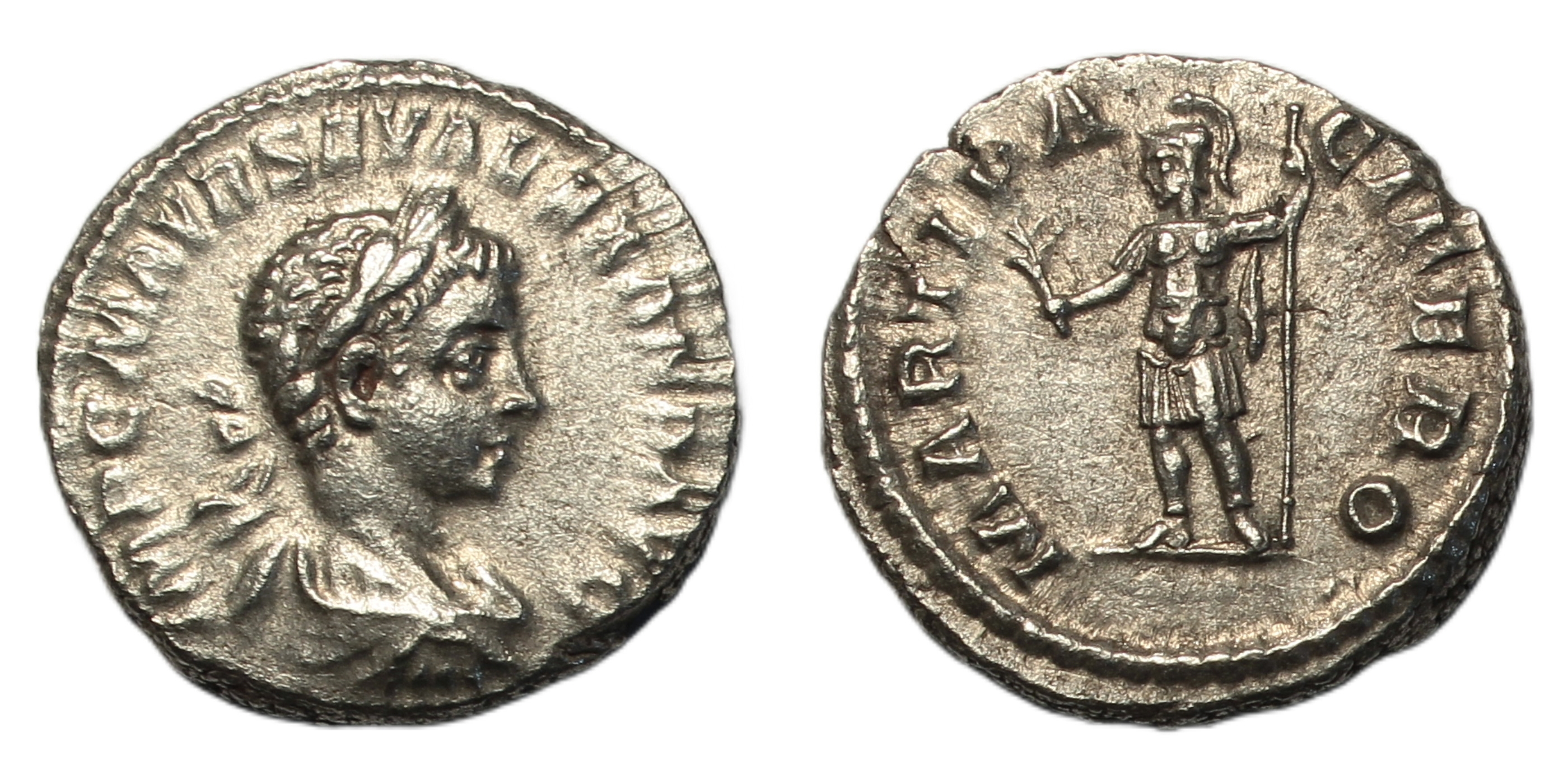 Denarius, Rome, laureate and draped bust right, rev. Mars standing holding branch and inverted spear, 3.44g, (RSC 173, RIC 160). Nearly extremely fine