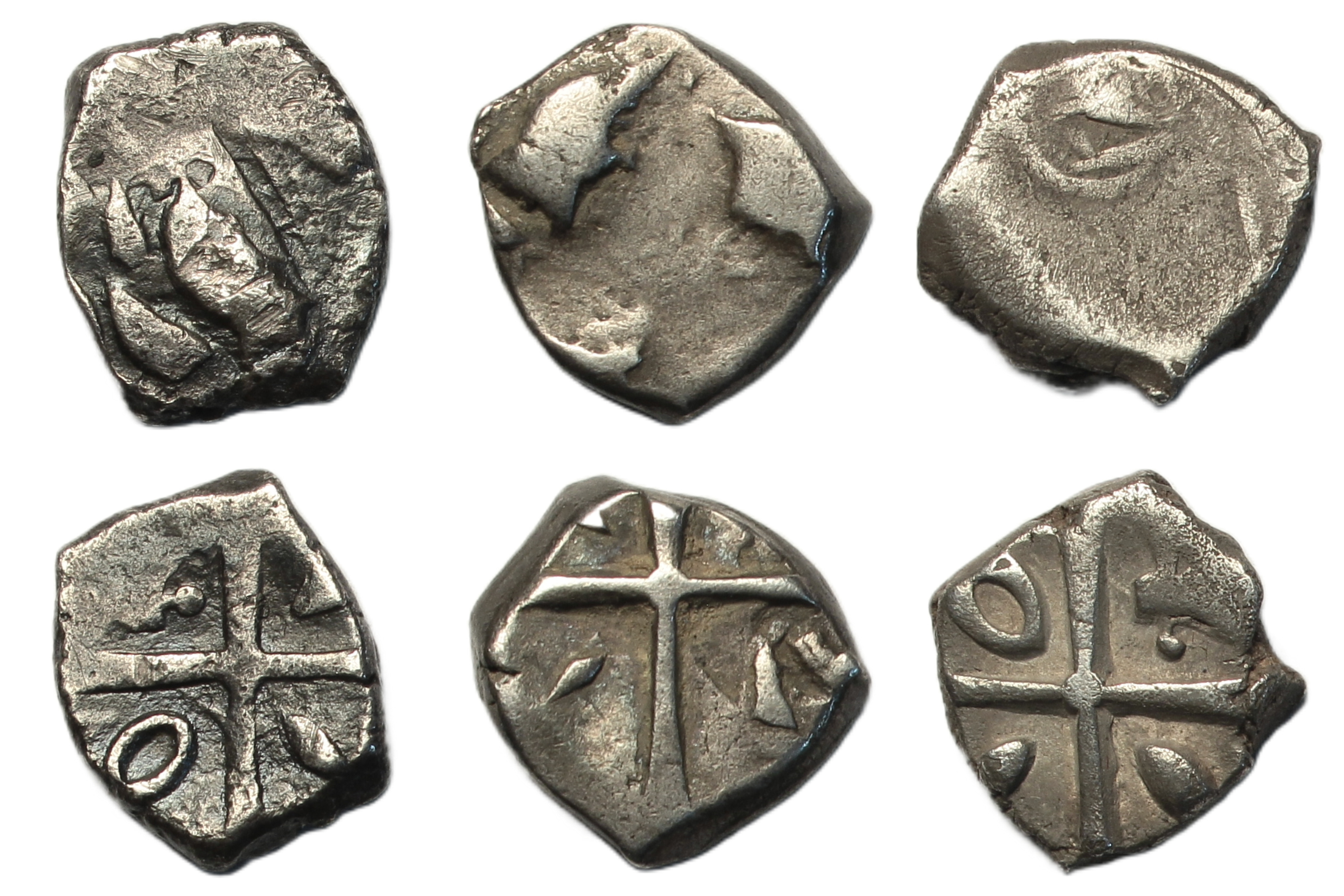 Drachm, Tetrosages, styalised heads, rev. cross with symbols in quarters. Generally good fine