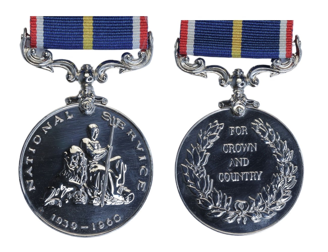 Elizabeth II, National Service Medal, a commemorative medal created by Award Productions Ltd. The Royal British Legion recognises men who served compulsory National Service in the UK from 1939 to 1960; it is not an official government award. Edward VII South Africa Medal, rim has been erased together with a World War I miniture trio