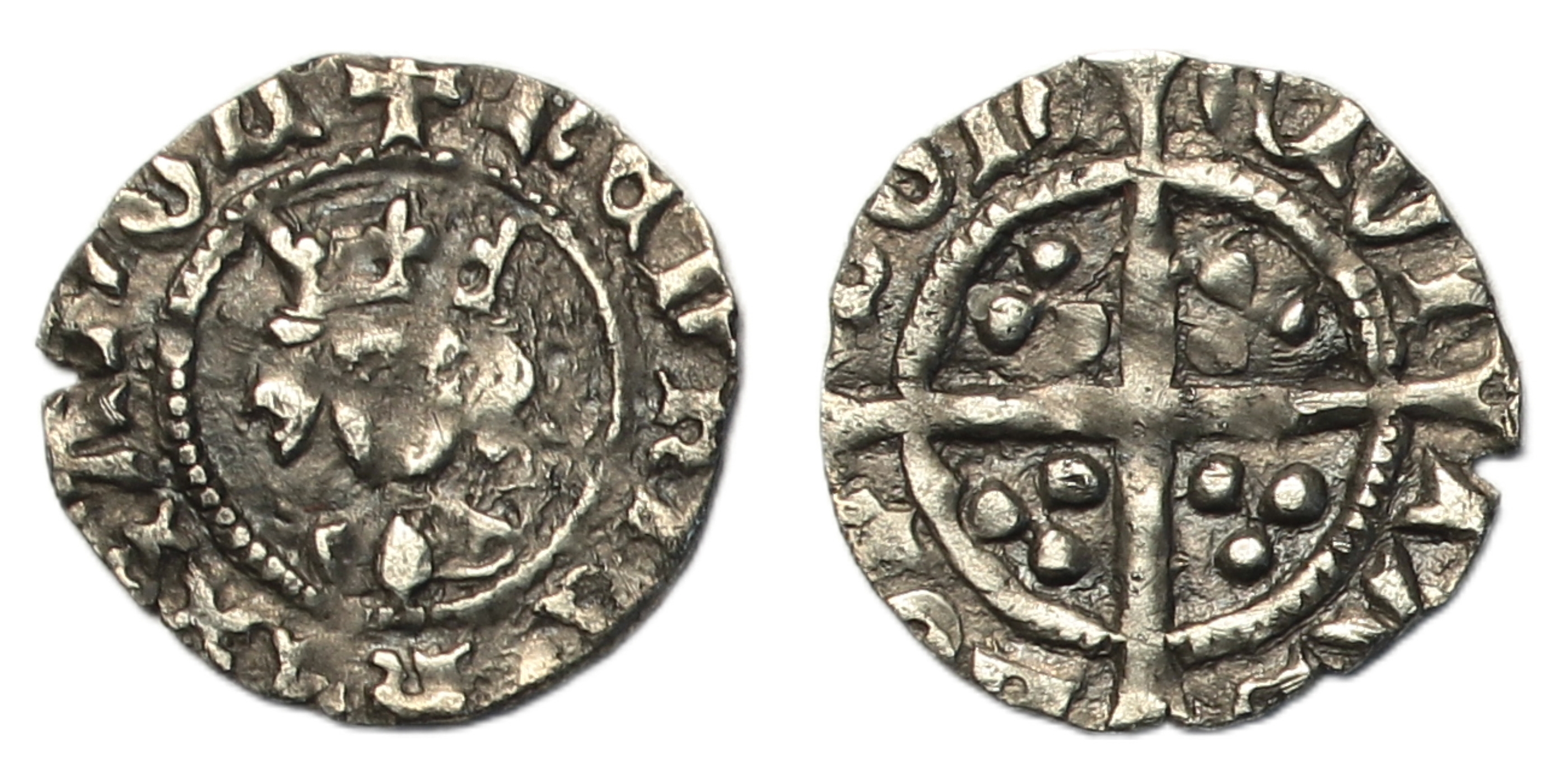 Halfpenny, leaf-mascle issue, London, crowned facing bust, rev. long cross pattee, leaf under N of London, 0.34g, (SCBC 1895, N.1480). Fine