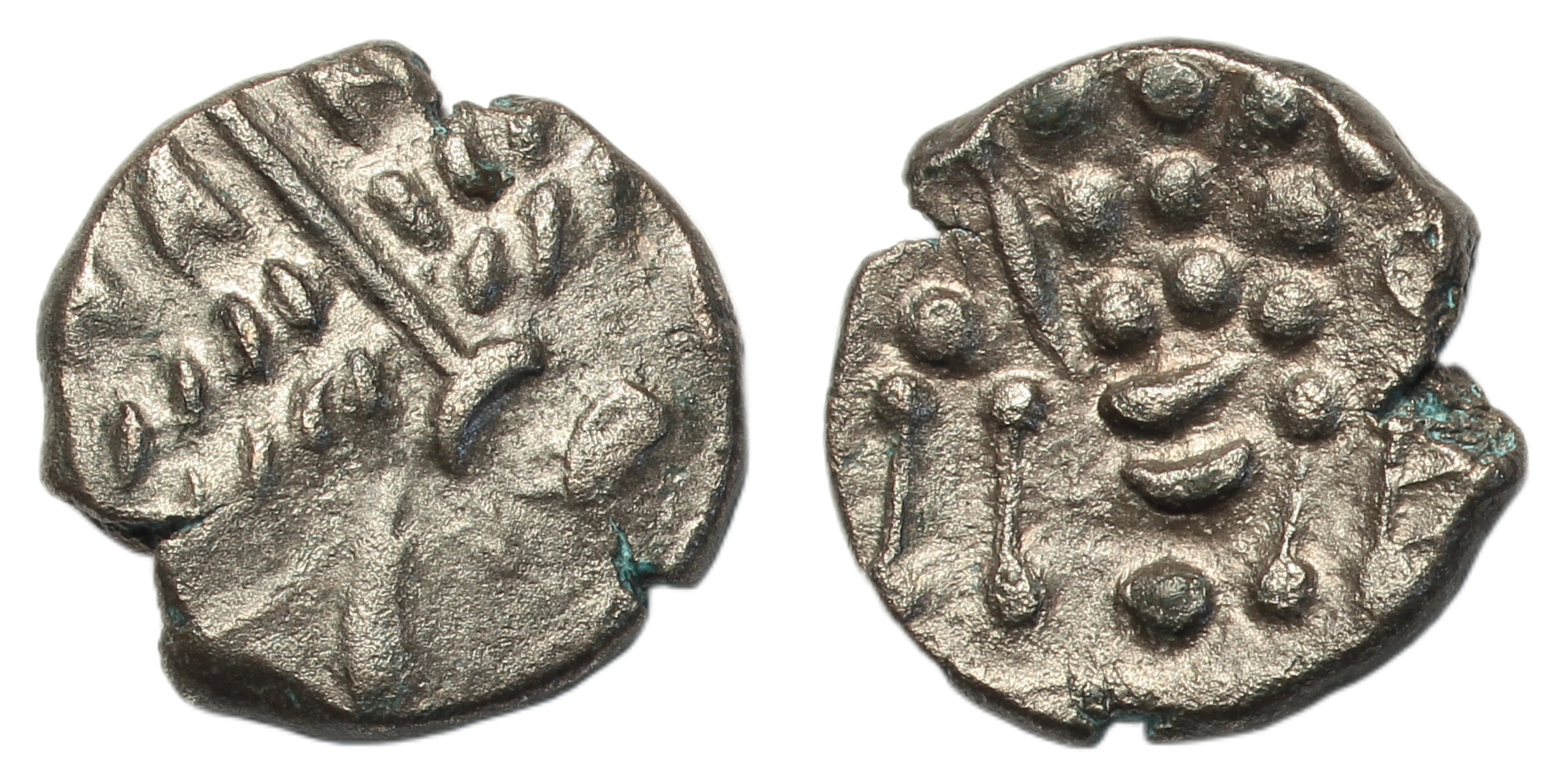 Silver stater, Cranborne chase, wreath, cloak and crescents, rev. disjointed horse left, many pellets above, 4.88g, (S.365, ABC. 2157). Good fine