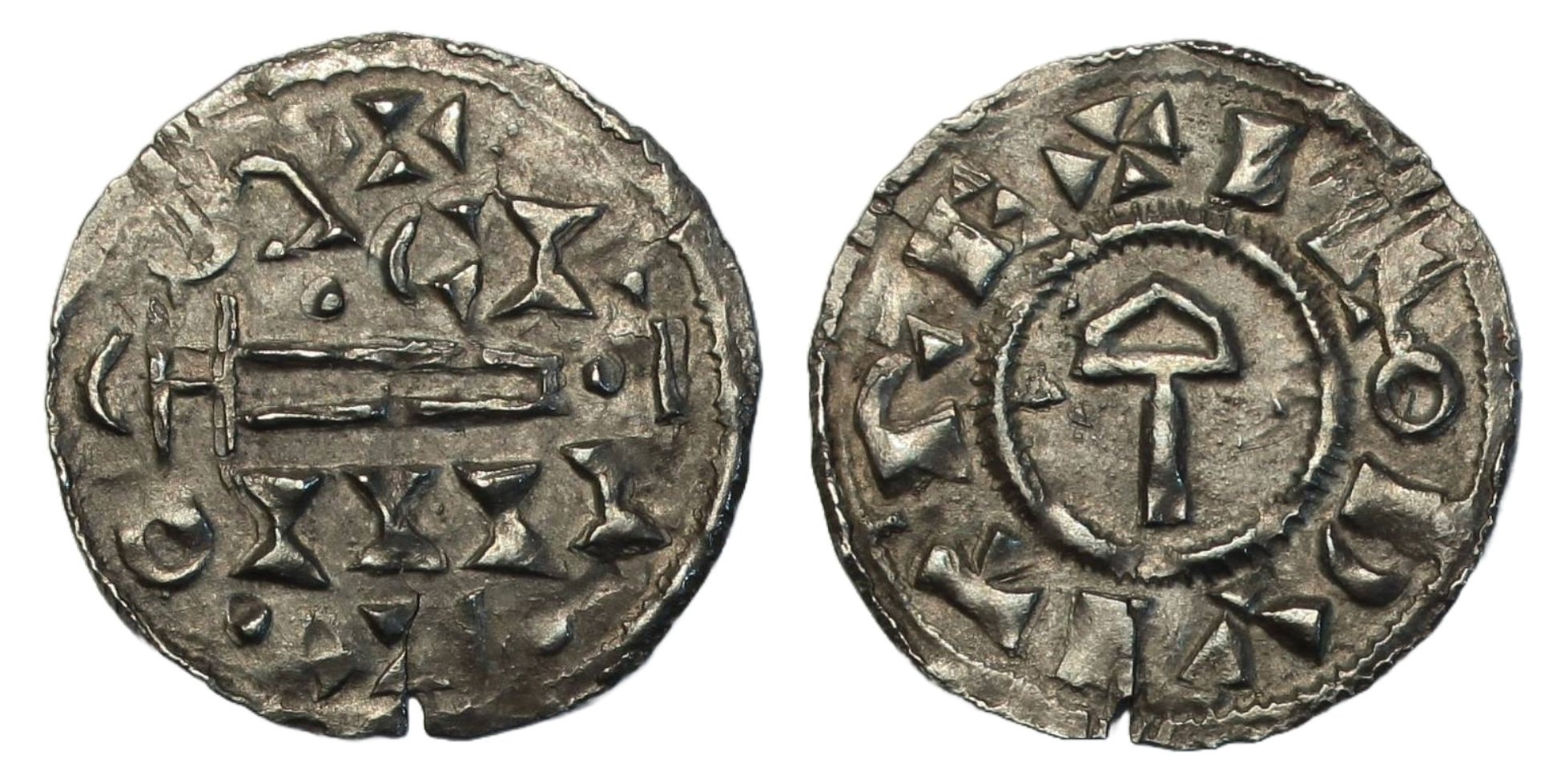 Penny, St. Peter sword type, sword dividing SCI oIII, rev. voided hammer, IEOBVITRE, 1.16g, (SCBC 1015, N.556). Small striking crack to edge (coin perfectly stable), nicely toned and good very fine, rare