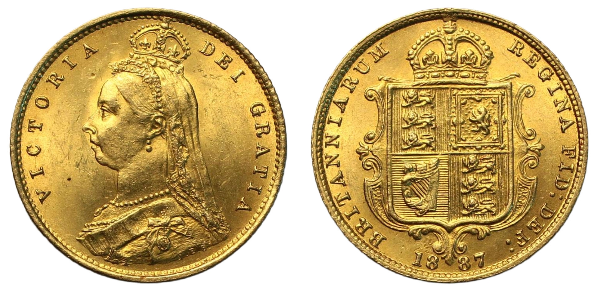 Half Sovereign, 1887, Jubilee bust left, normal JEB on truncation, rev. crowned high shield, date below, (SCBC 3869). Extremely fine or better