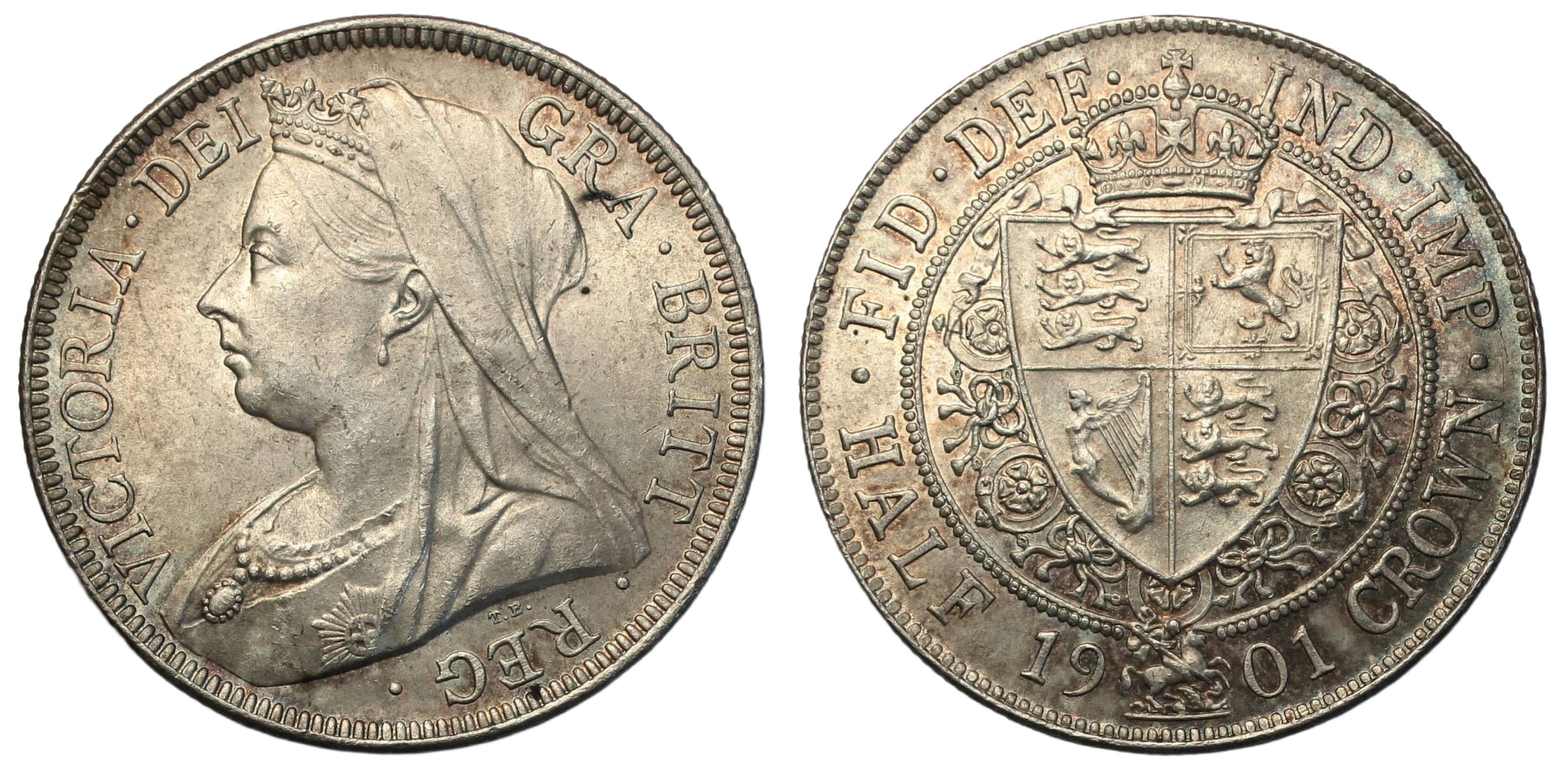 Halfcrown, 1901, old veiled bust left, rev. crowned shield in collar, date below, (SCBC 3938, ESC 2787). Toned, extremely fine