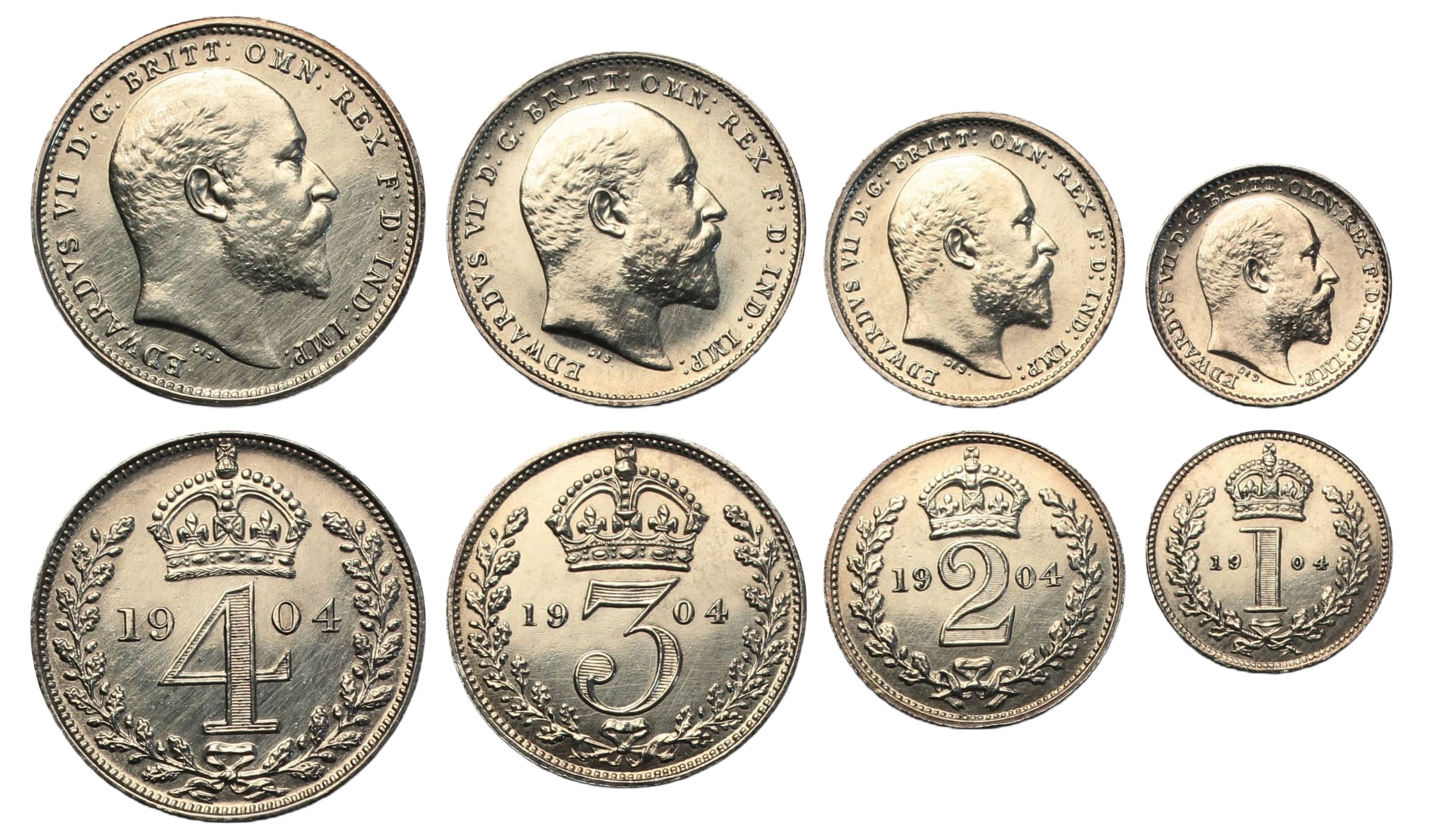 Maundy set, 1904, bare head right, rev. crowned mark of value dividing date, (SCBC 3985, ESC 3610). Sometime lightly cleaned, bright and otherwise virtually as struck