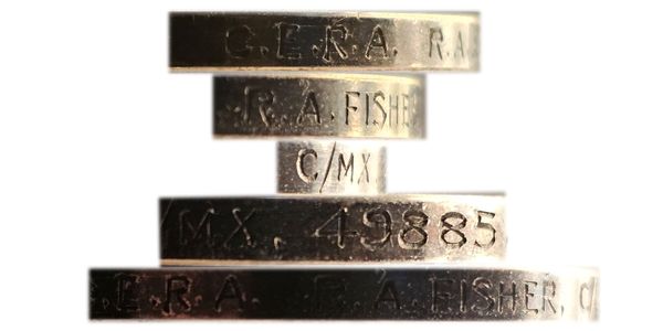 Various pictures of Ronald Albert Fisher and pictures of submarines and tunic buttons.
