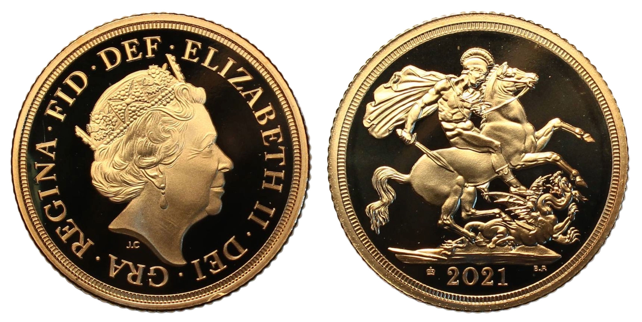 Proof Sovereign, 2021, 95th birthday edition, crowned head right, rev. St. George slaying dragon, date and privy mark below, (SCBC SC9M). FDC with Royal Mint box and certificate of authenticity