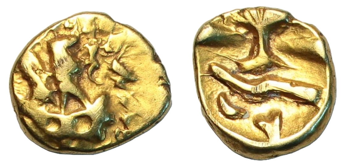 Quarter Stater, boat tree type, stylised boat with 2 standing figures, rev. tree like object surrounded by various shapes, 1.44g, (SCBC 10, ABC 40, VA 69-01). Good very fine, the reverse better