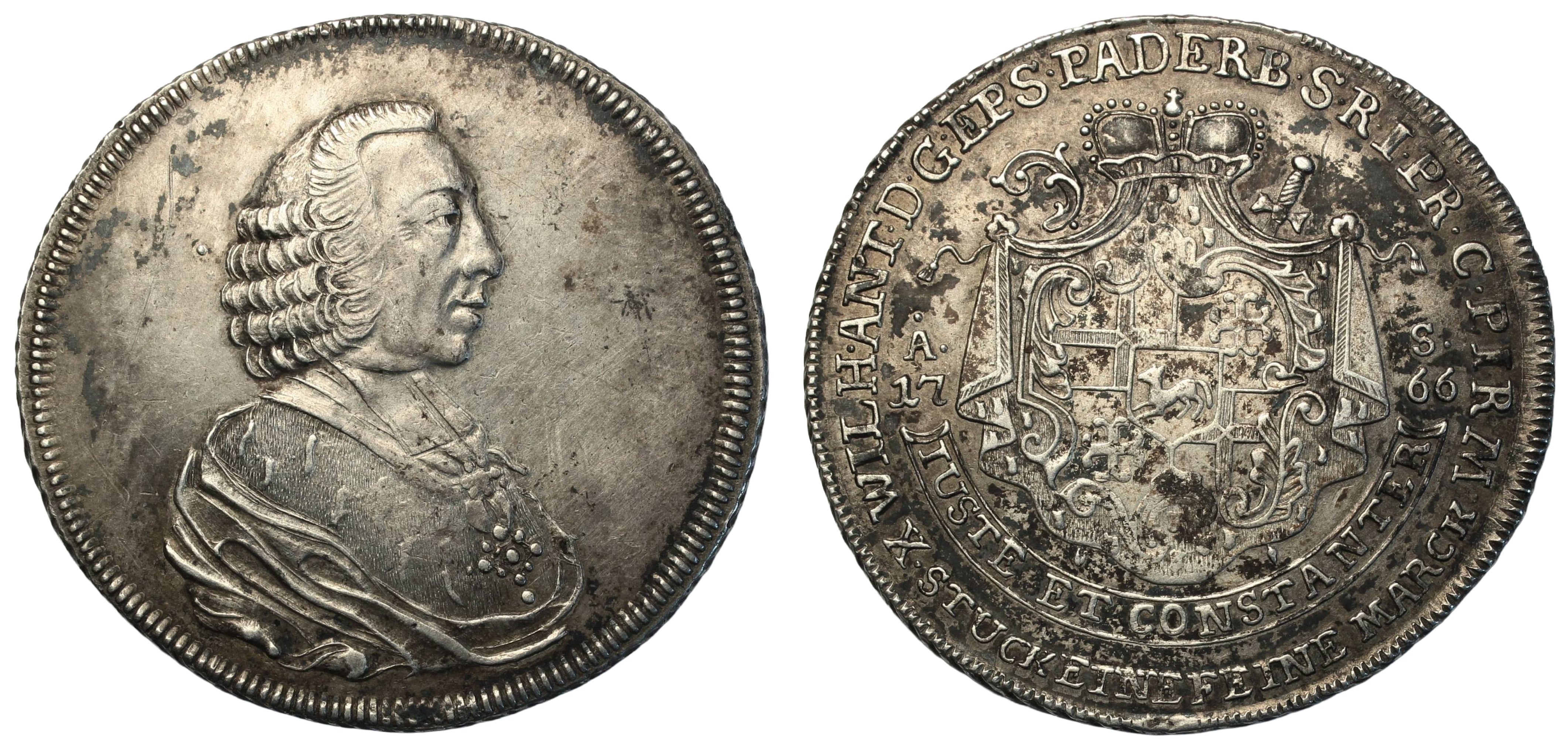 Taler, 1766, Paderborn, bust right, rev. crowned mantled arms dividing date, 28g, (Dav. 2515; Schwede 319 A/a). Toned, very fine and very rare