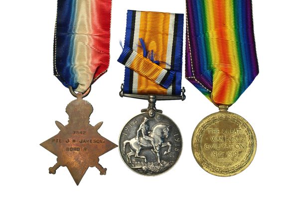 1914-15 Star, (7542 Pte J.W. Jameson Bord.R.) and British War and Victory Medals (2), (7542 Sjt J.W. Jameson Bord.R.)