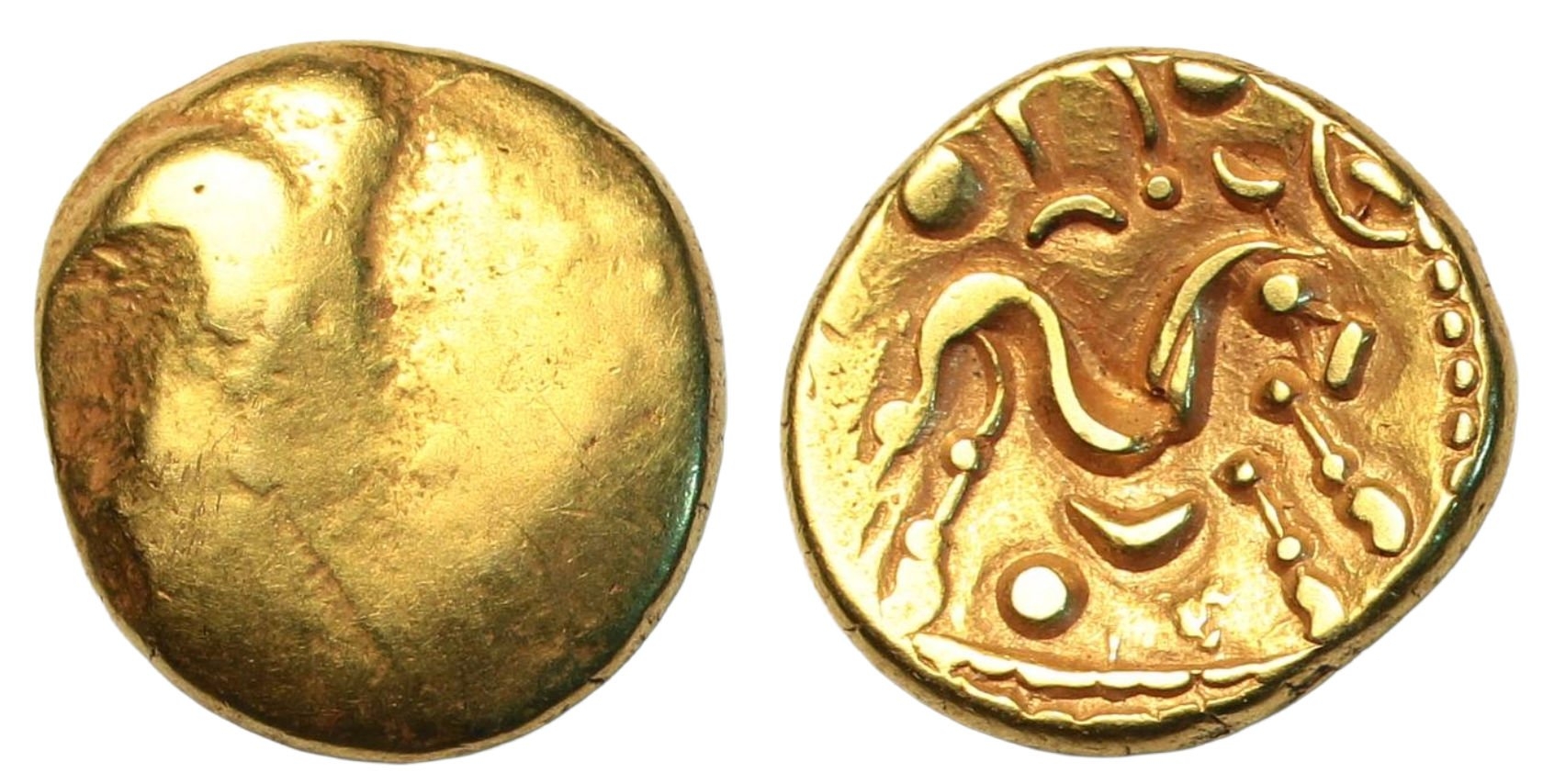 Stater, Ambiani (c.60-50 B.C.), series E, uniface, obv. plain, rev. sinuous horse right, various ornaments around and in exergue, 6.15g, (SCBC.11, ABC 16, Van Arsdell 52). About extremely fine