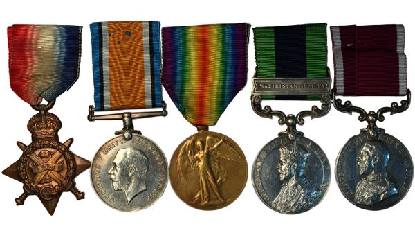 1914 Star, (8881 Sgt C Scaife 2/Bord R); British War and Victory Medals (2), (8881 Sgt C Scaife Bord R); India General Service Afghanistan, Waziristan 1921-24 bar, (3589442 W.O. CL.2. C Scaife Bord. R.); L.S & G.C GV 2nd type, (3589442 W.O. CL.II. C Scaife Bord. R.); 1939-45 Star; Africa Star; Defence Medal; War Medal 1939-45 and Territorial medal, (65206 Pte. C.V.R Scaife C.M.P)