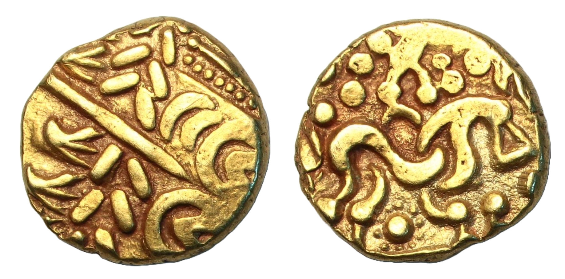 Stater, North East Coast type, wreath, cloak and crescents, rev. sinuous horse right, pellets and charioteer's arms above, pelletal sun below, 6.17g, (SCBC 28, ABC 1719, VA 800-09). Well struck, bold very fine
