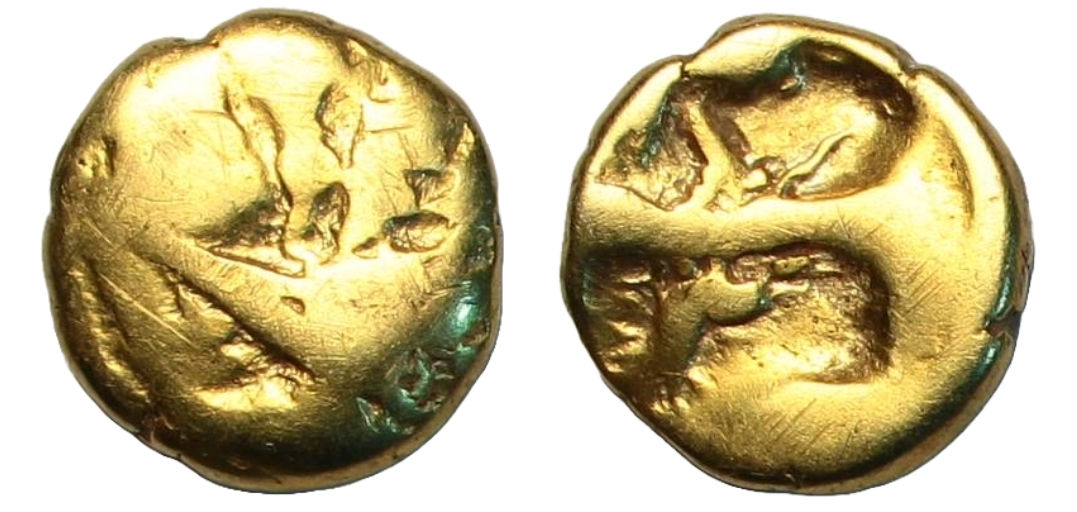 Quarter Stater, Sills insular Cf, boat with two occupants, rev. tree like object, 1.65g, (SCBC 39a, ABC 530). Fine but rare