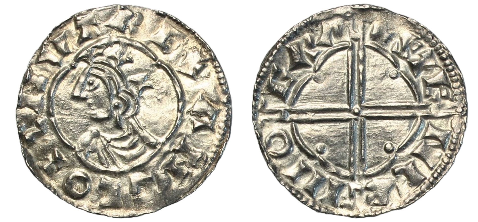 Penny, quatrefoil type, Cambridge, moneyer Staengrim, draped bust left within quatrefoil, legend commences at 8 o'clock, +CNVT REX ΛNGLO, rev. long voided cross over quatrefoil with pellet cusps and pellet centre, +STENGRIII O GRΛ, 0.94g, (SCBC 1157, N.781) Bright, extremely fine, the moneyer extremely rare