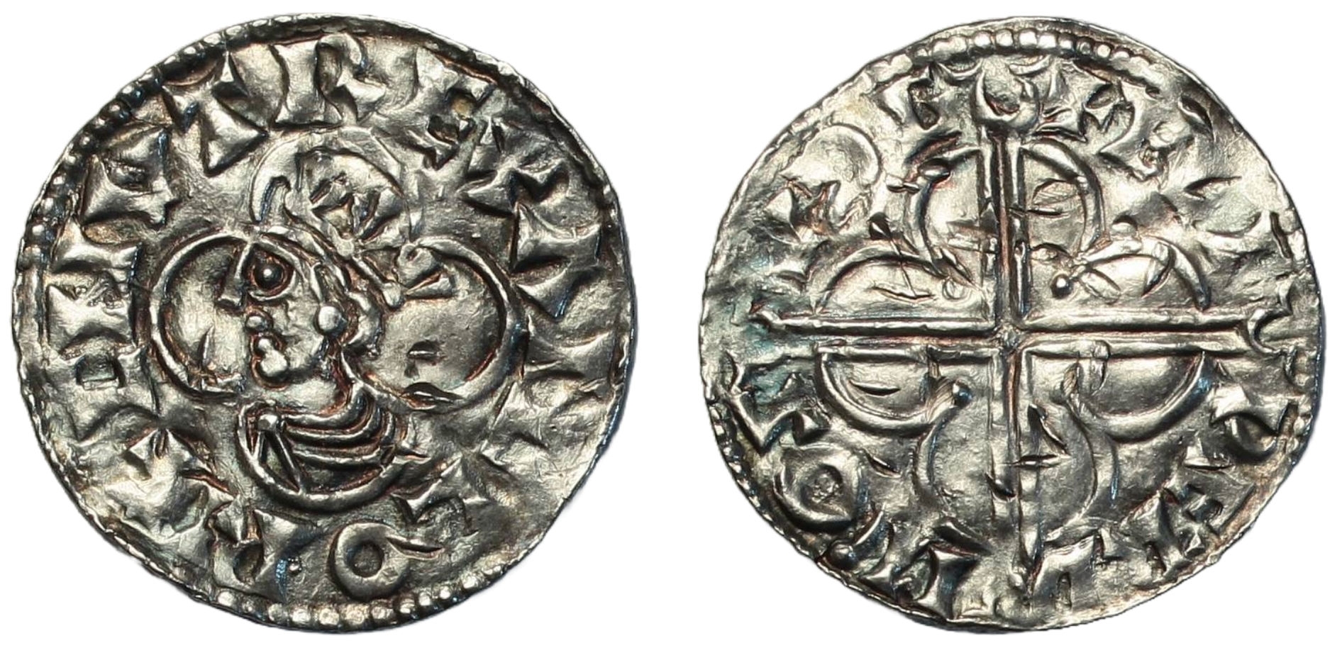 Penny, quatrefoil type, Southwark, moneyer Aelfweard, draped bust left within quatrefoil, legend commences at 8 o'clock, +CNVT REX ΛNGLORI, rev. long voided cross over quatrefoil with pellet cusps and pellet centre, +ÆLFPERD MO SVÐG, 0.99g, (SCBC 1157, N.781). A few peck marks both sides, very fine