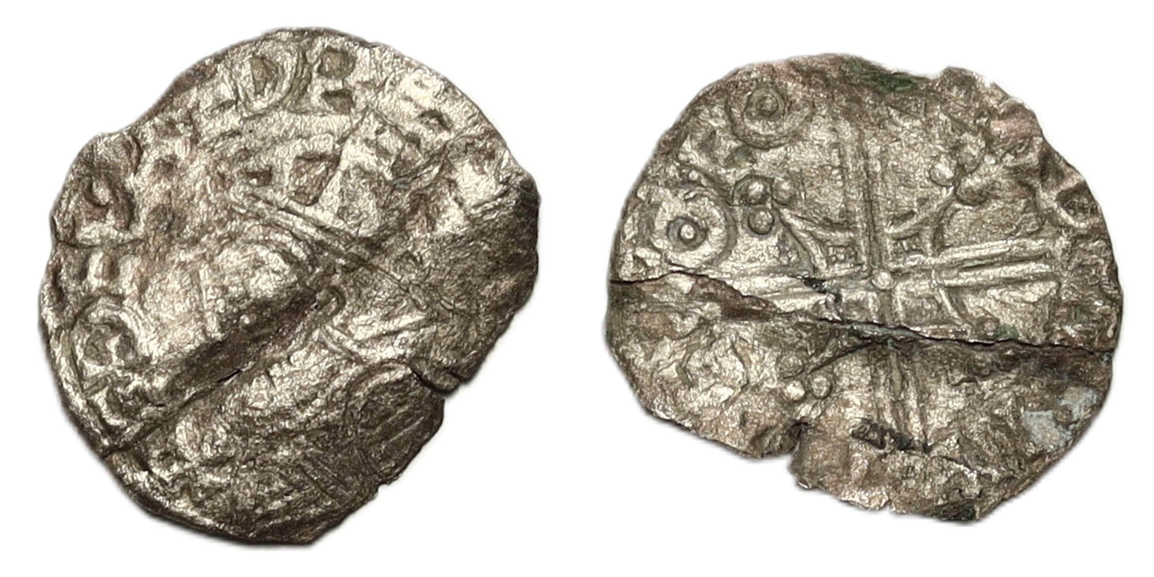 Penny, helmet type, York mint, moneyer unknown, helmeted bust left, rev. long voided cross with three crescent terminals, over a smaller square with trefoil terminals, 0.54g, (SCBC 1152, N.775). Coin has been repaired, fair