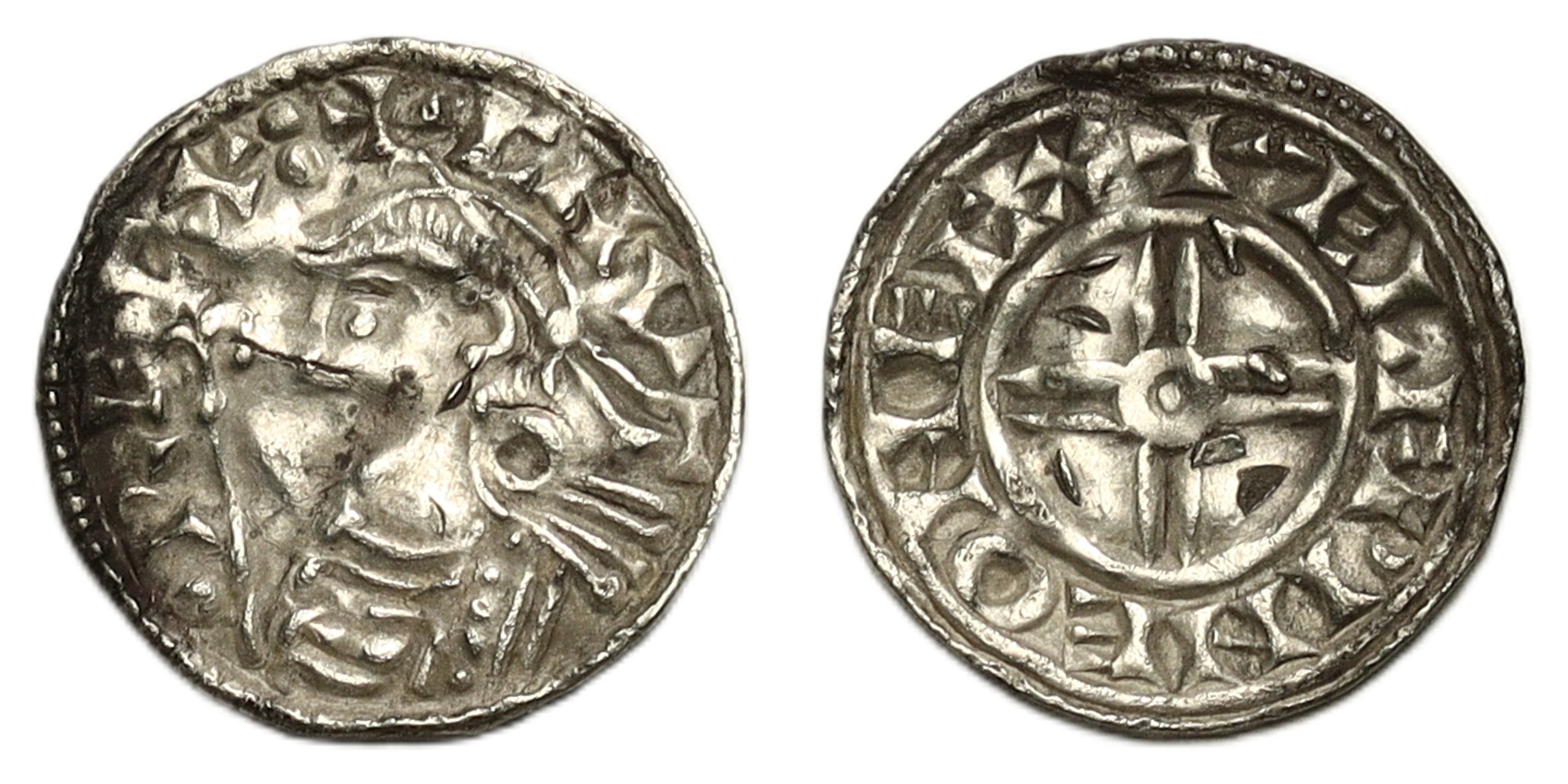 Penny, short cross type, Exeter, moneyer Aelfwine, diademed bust left holding sceptre, +CNVT. RECX:, rev. small voided cross, +ÆLFPINE ON ECX, 1.11g, (SCBC 1159, N.790). Peck marks on obverse and reverse, small lamination on obverse, weakly struck, about very fine