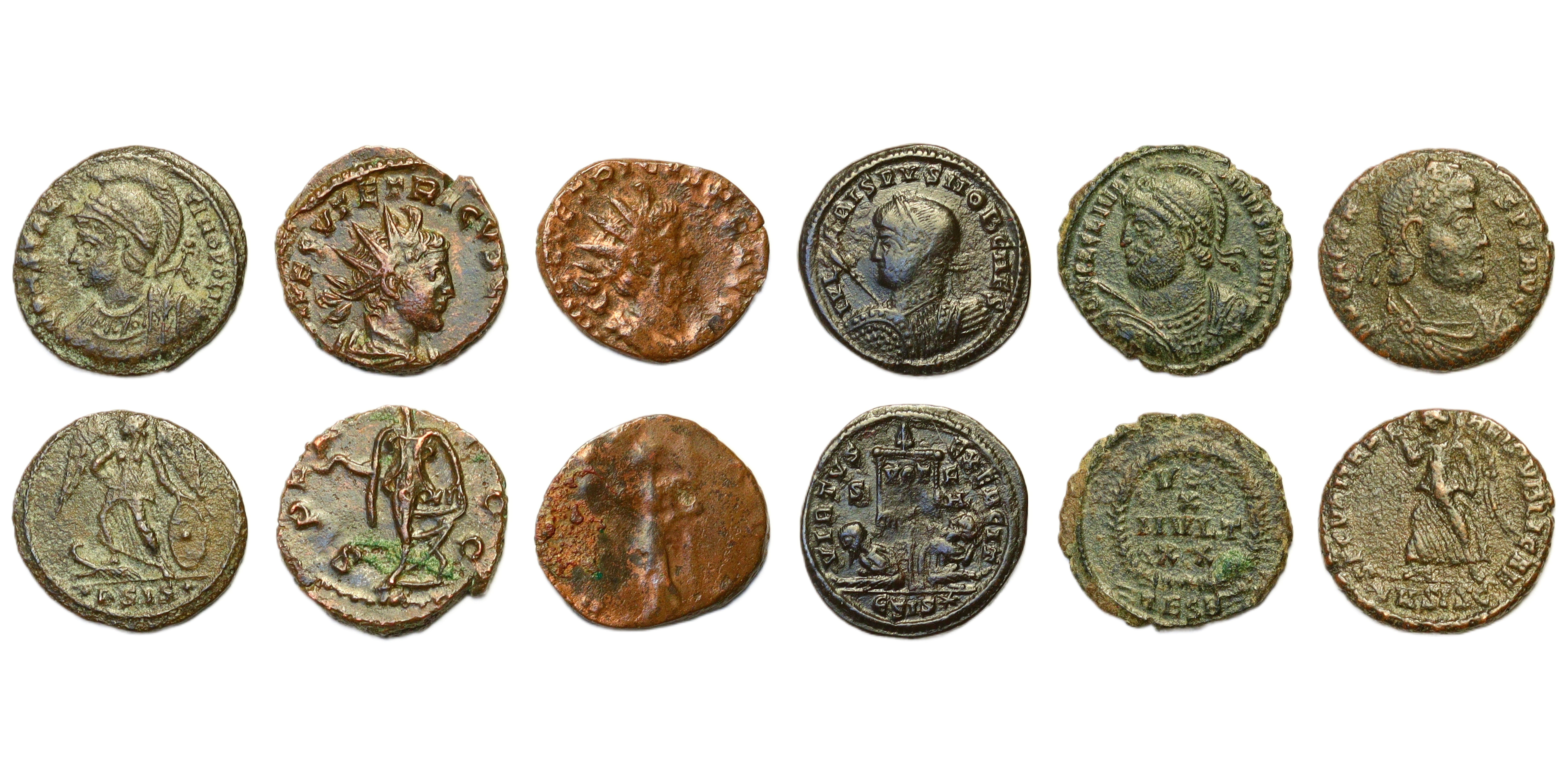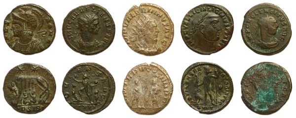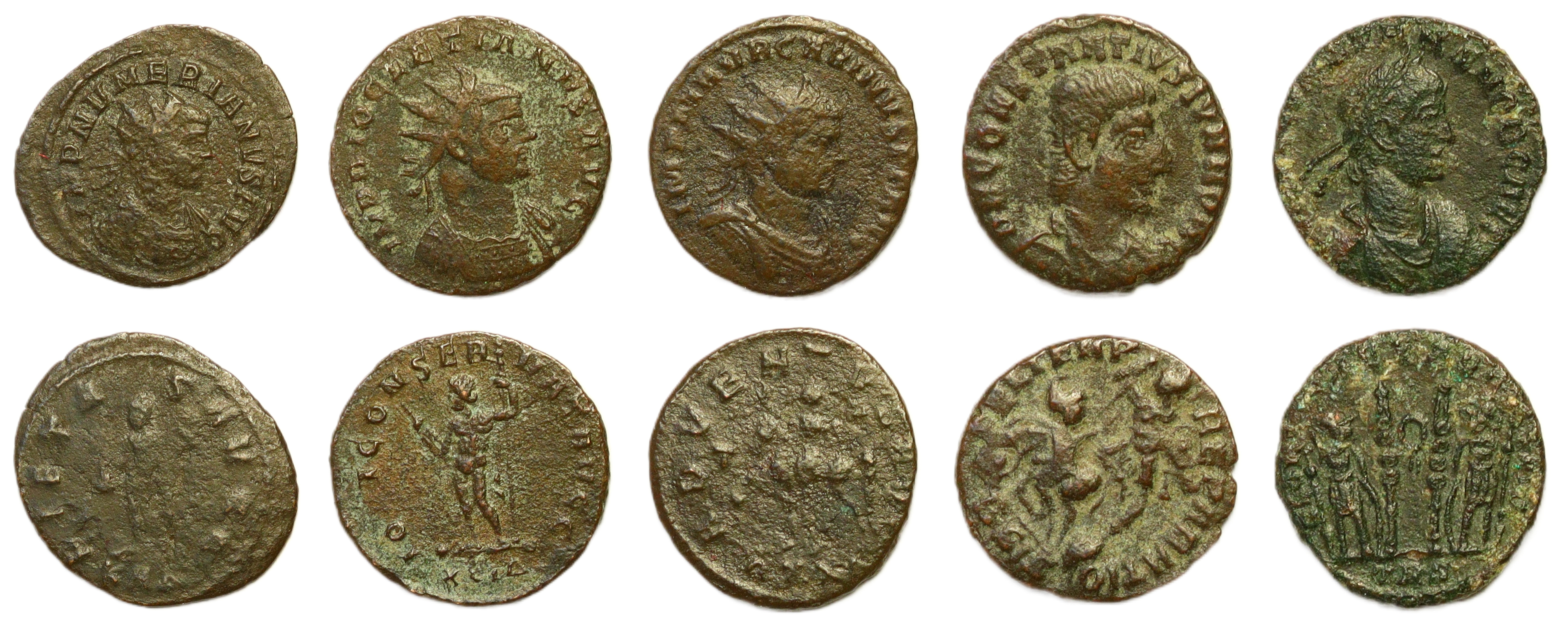 Group of 3rd-4th Century Roman coinage, some of which are from the Blackmoor Hoard, including Tetricus, Licinius, Aurelian, Numerian and Contatius. Generally fine or better