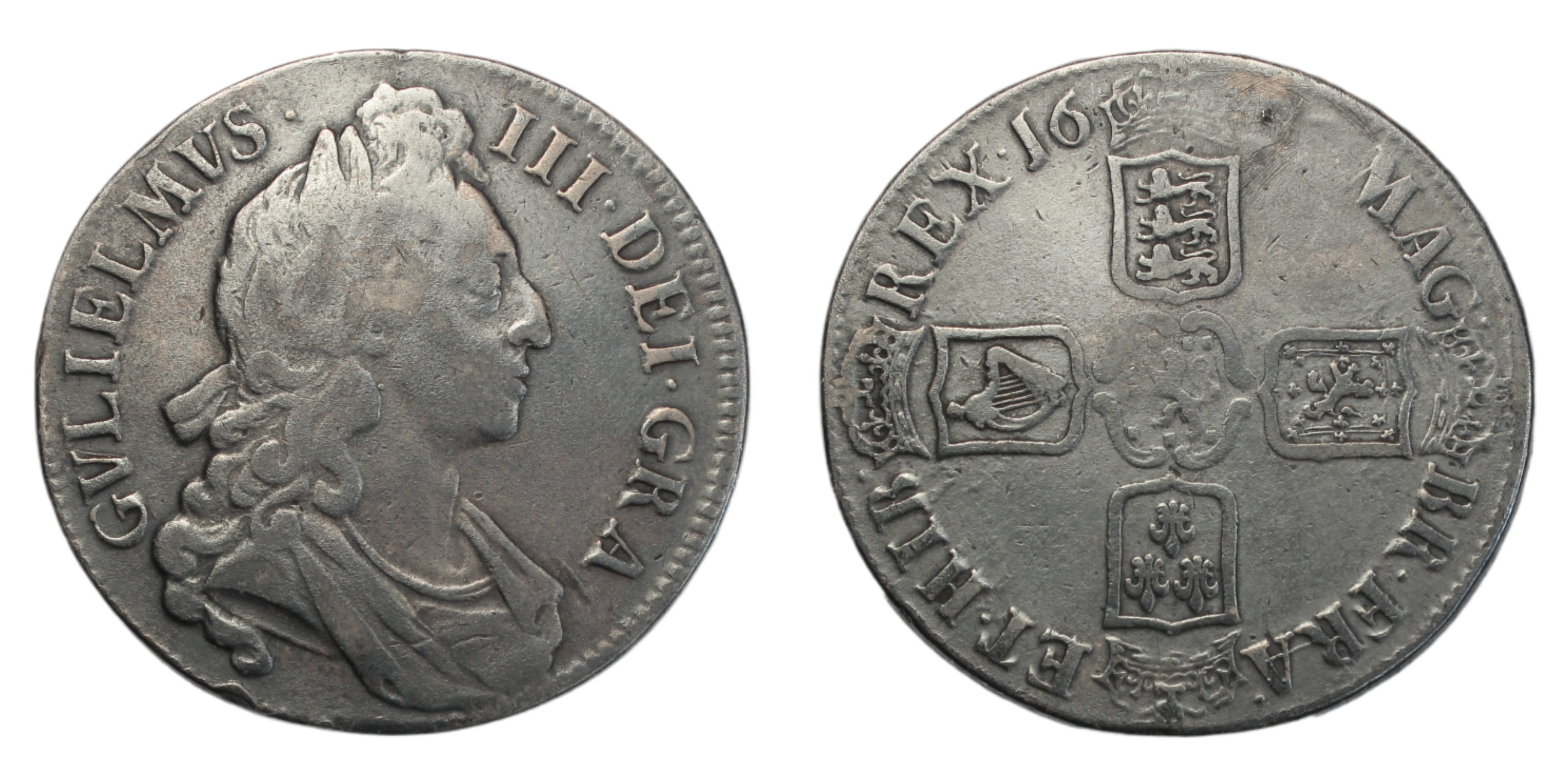 Crown, 1695, laureate and draped bust right, rev. crowned cruciform shields, edge SEPTIMO, (SCBC 3470, ESC 86, Bull 990). Date weak, probably artificially toned, fine