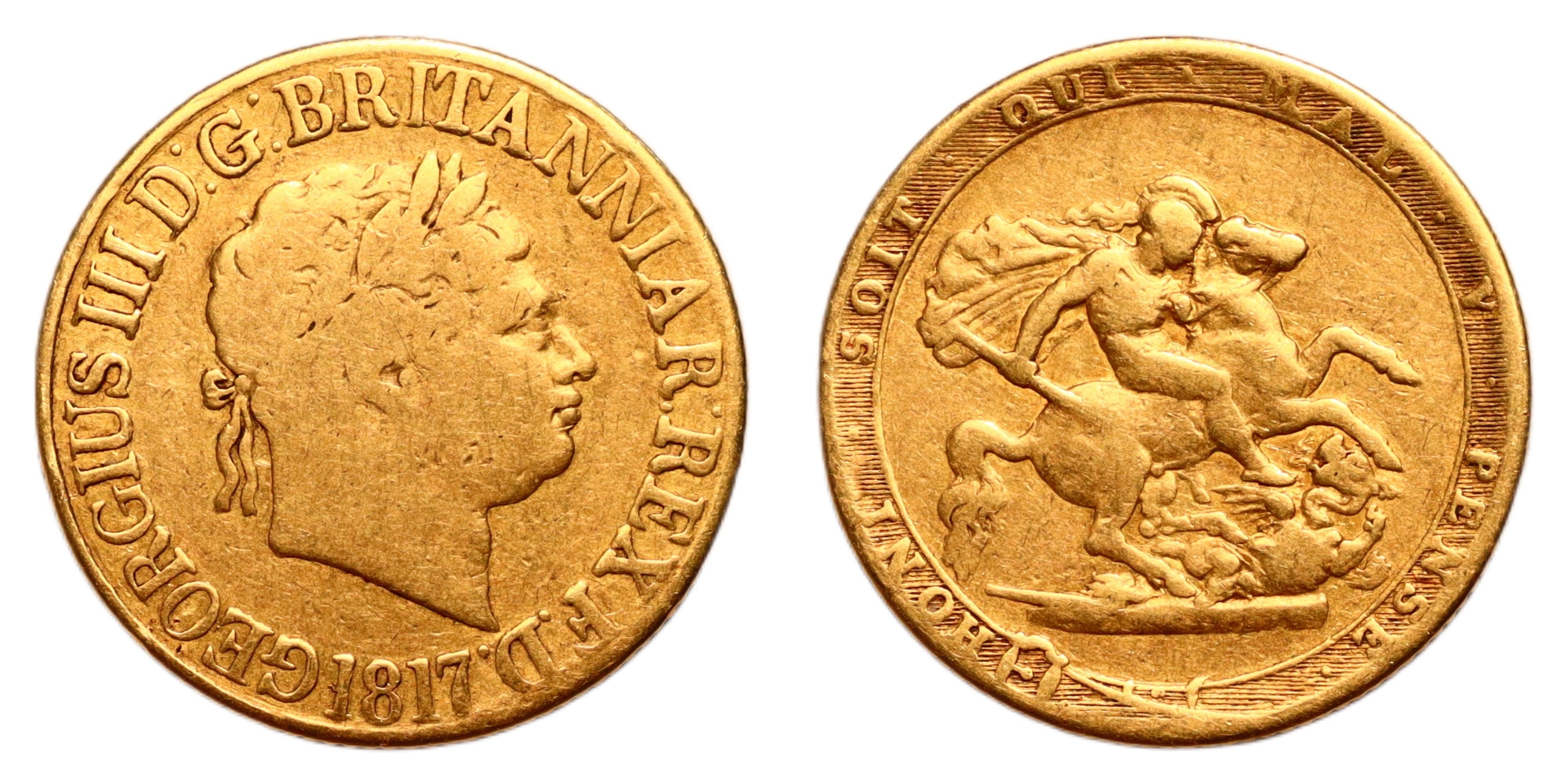 Sovereign, 1817, laureate head right, date below, rev. St. George slaying dragon, within garter, (SCBC 3785). Fine