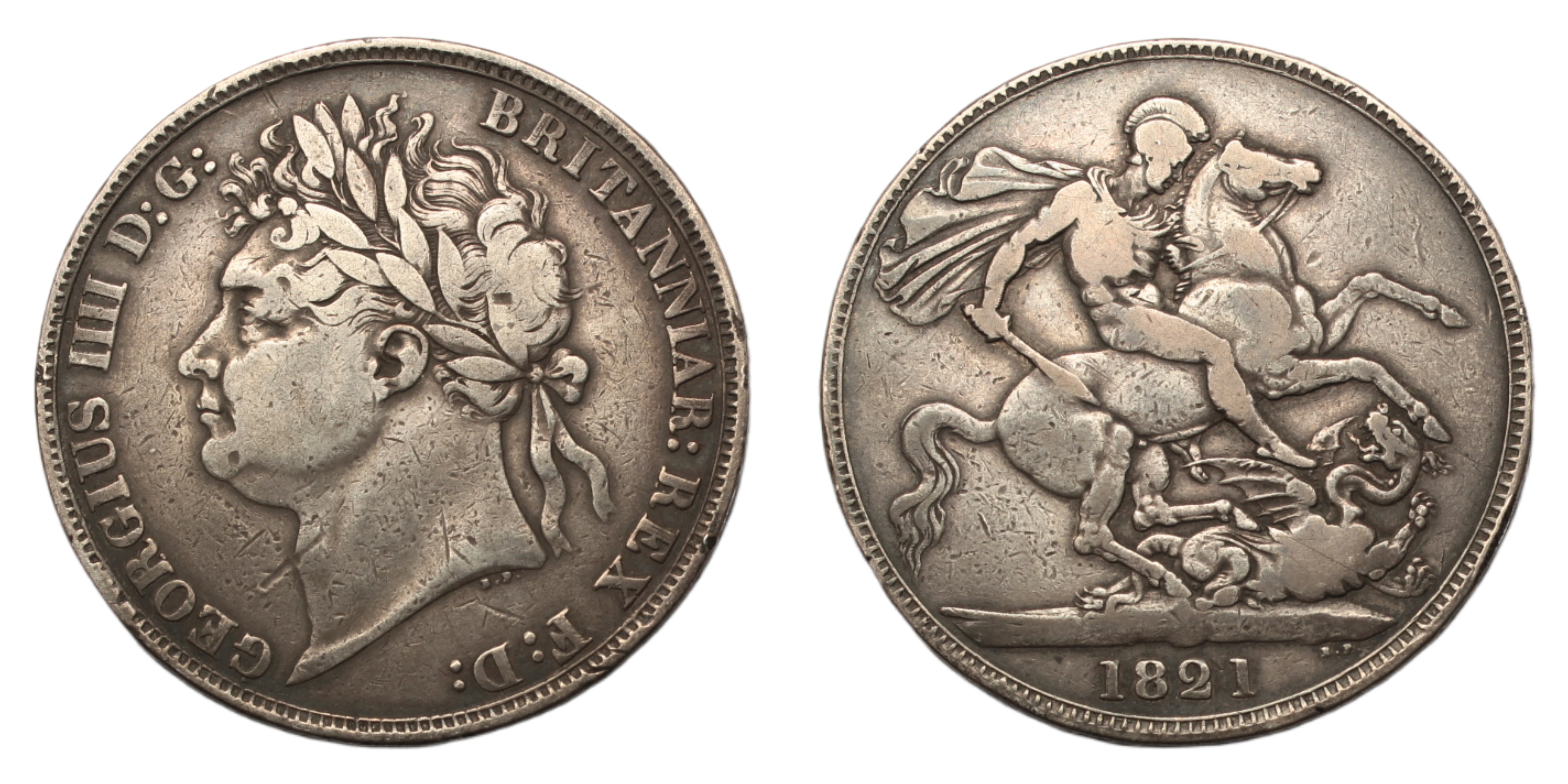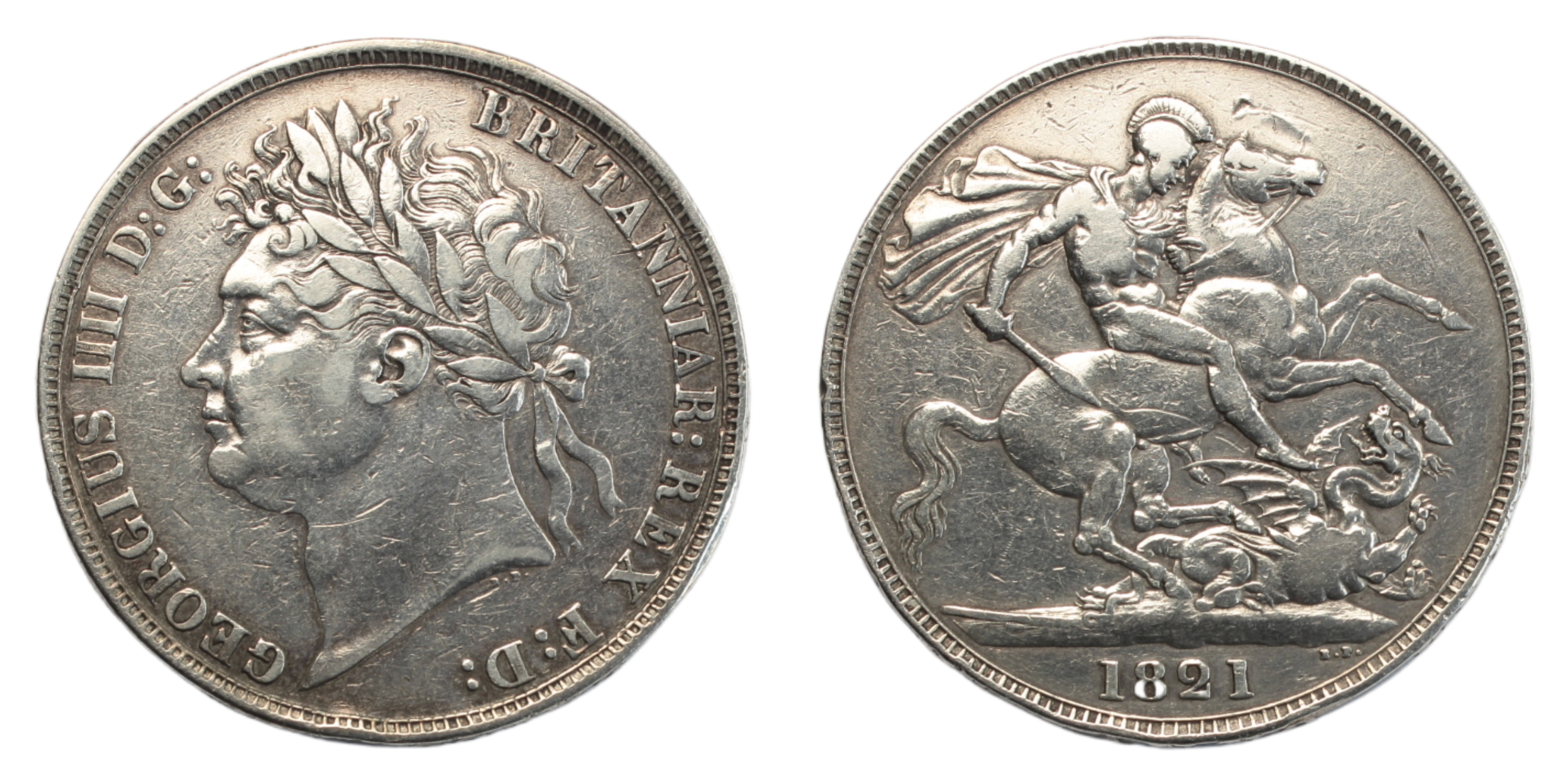 Crowns, 1821, laureate head left, rev. St. George slaying dragon, date below, edge SECUNDO, (SCBC 3805, ESC 246, Bull 2310). All fine, a few edge knocks, one cleaned