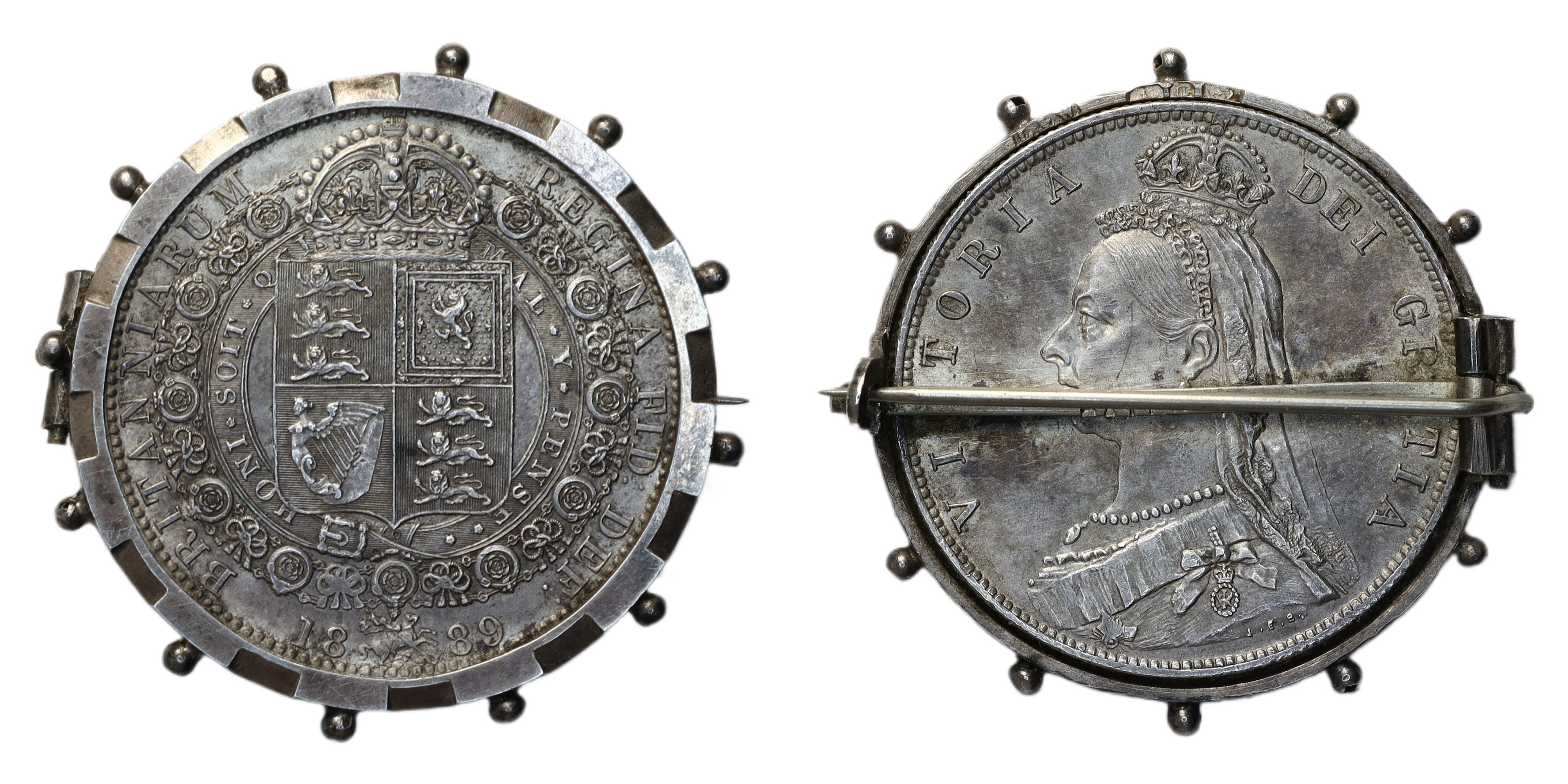 Double Florin and Halfcrown (in removable mount), 1889, jubilee head left, rev. crowned cruciform shields, sceptres in the angles, (SCBC 3923, ESC 398, Bull 2701); crowned shield in garter, (SCBC 3924, ESC 722, Bull 2774), along with a Florin, 1887, jubilee bust left, rev. crowned cruciform shields, sceptre in angles, (SCBC 3925, ESC 868, Bull 2953). The first fine with a scratch to obverse, the others, good very fine