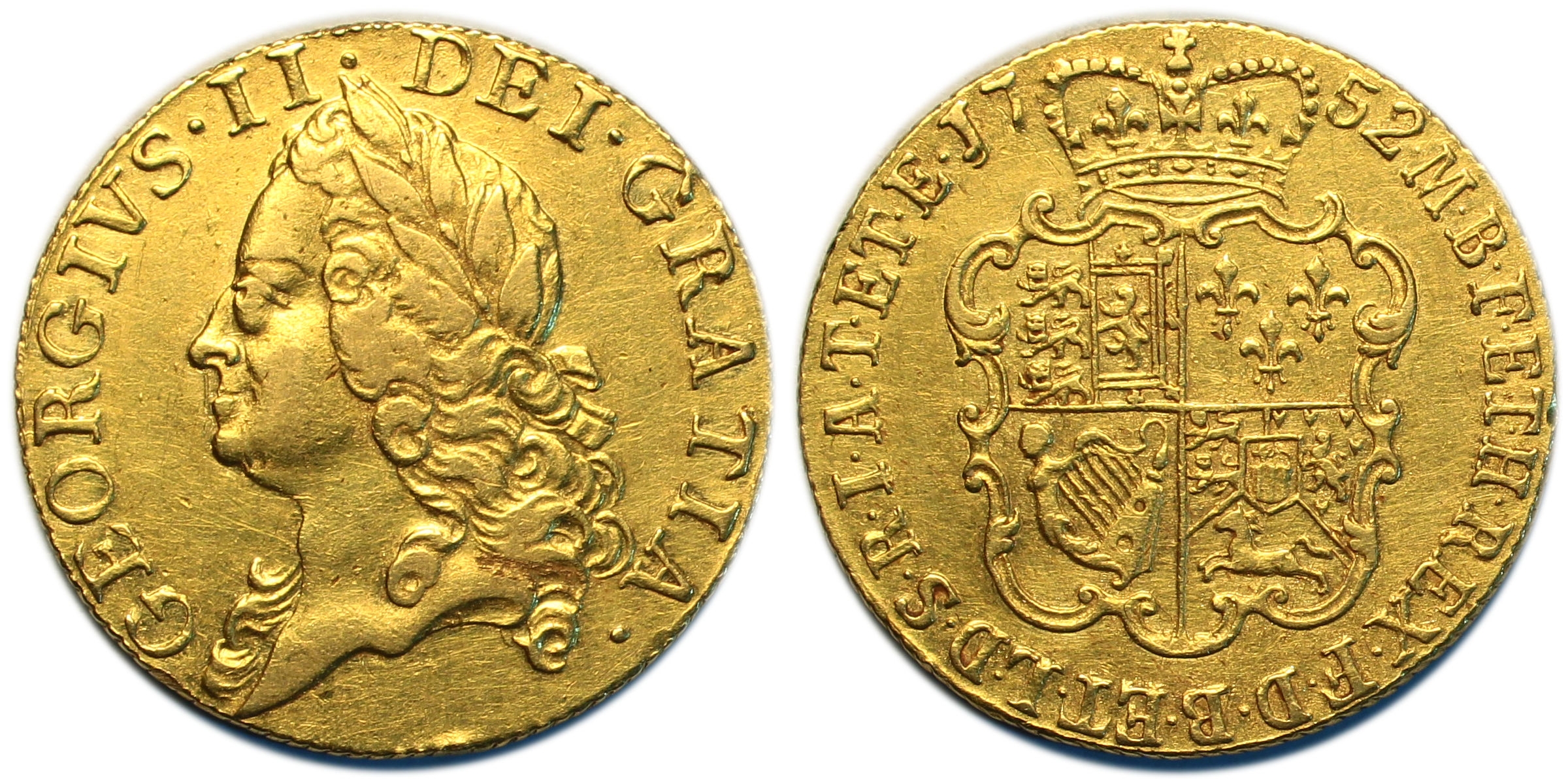 Guinea, 1752, old laureate head left, rev. crowned shield, (SCBC 3680). Some hairlines, good very fine with some original lustre to the reverse