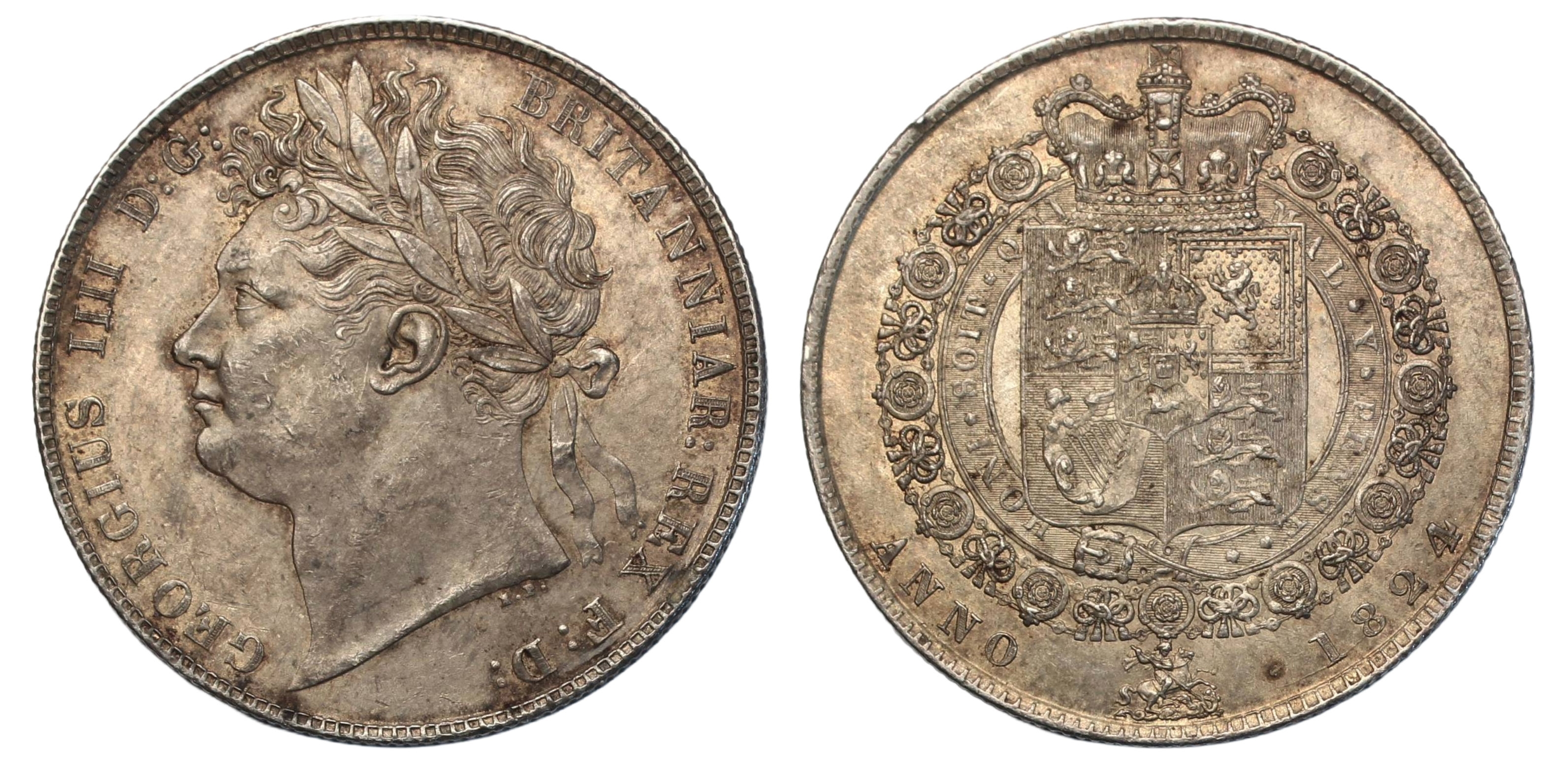 Halfcrown, 1824, second reverse, laureate head left, rev. crowned shield in garter, (SCBC 3808 ESC.2367). Extremely fine