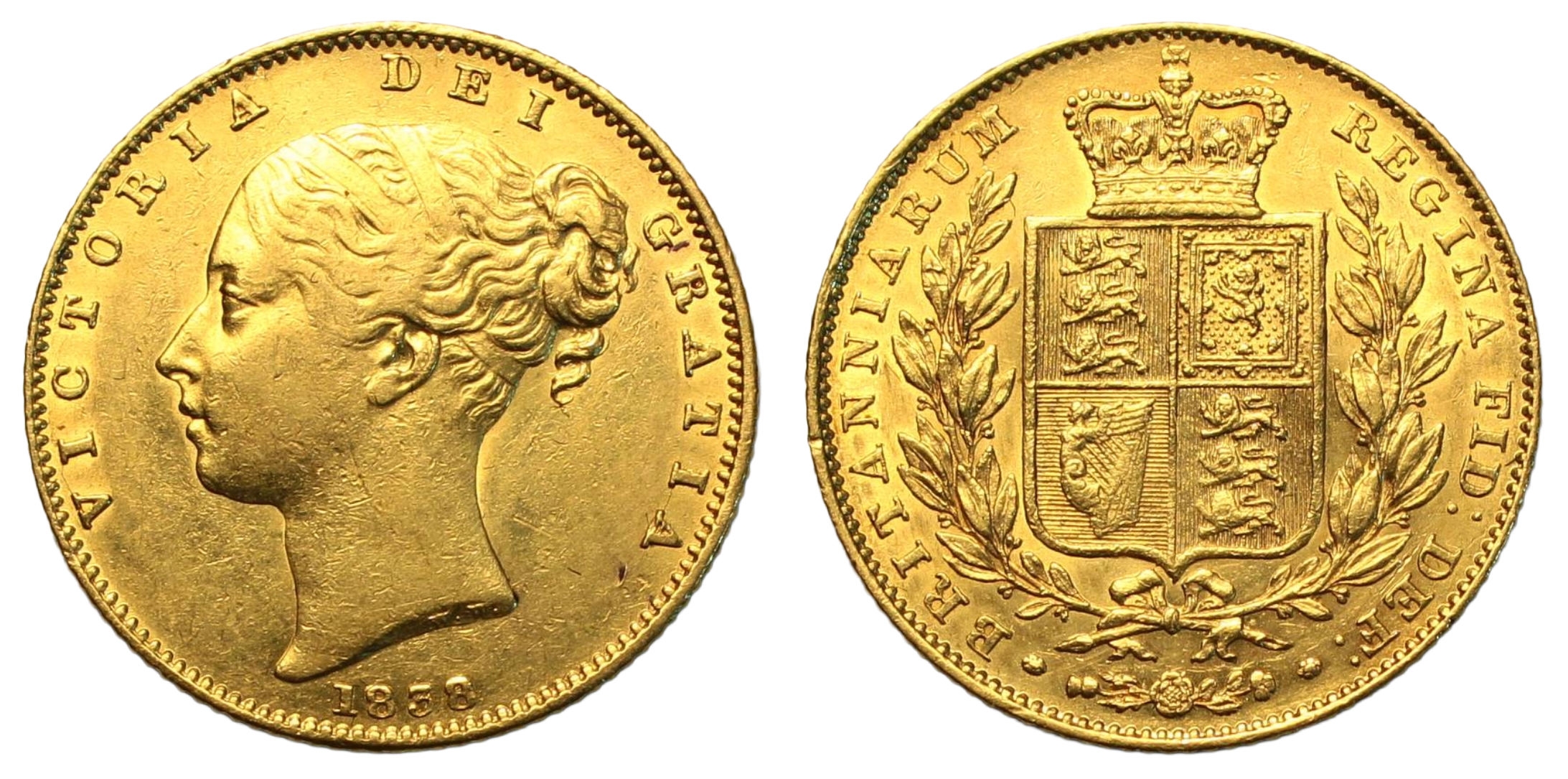Sovereign, 1838, first young head left, date below, rev. crowned shield within wreath, (SCBC 3852, Marsh 22). Rare, about very fine, the reverse better