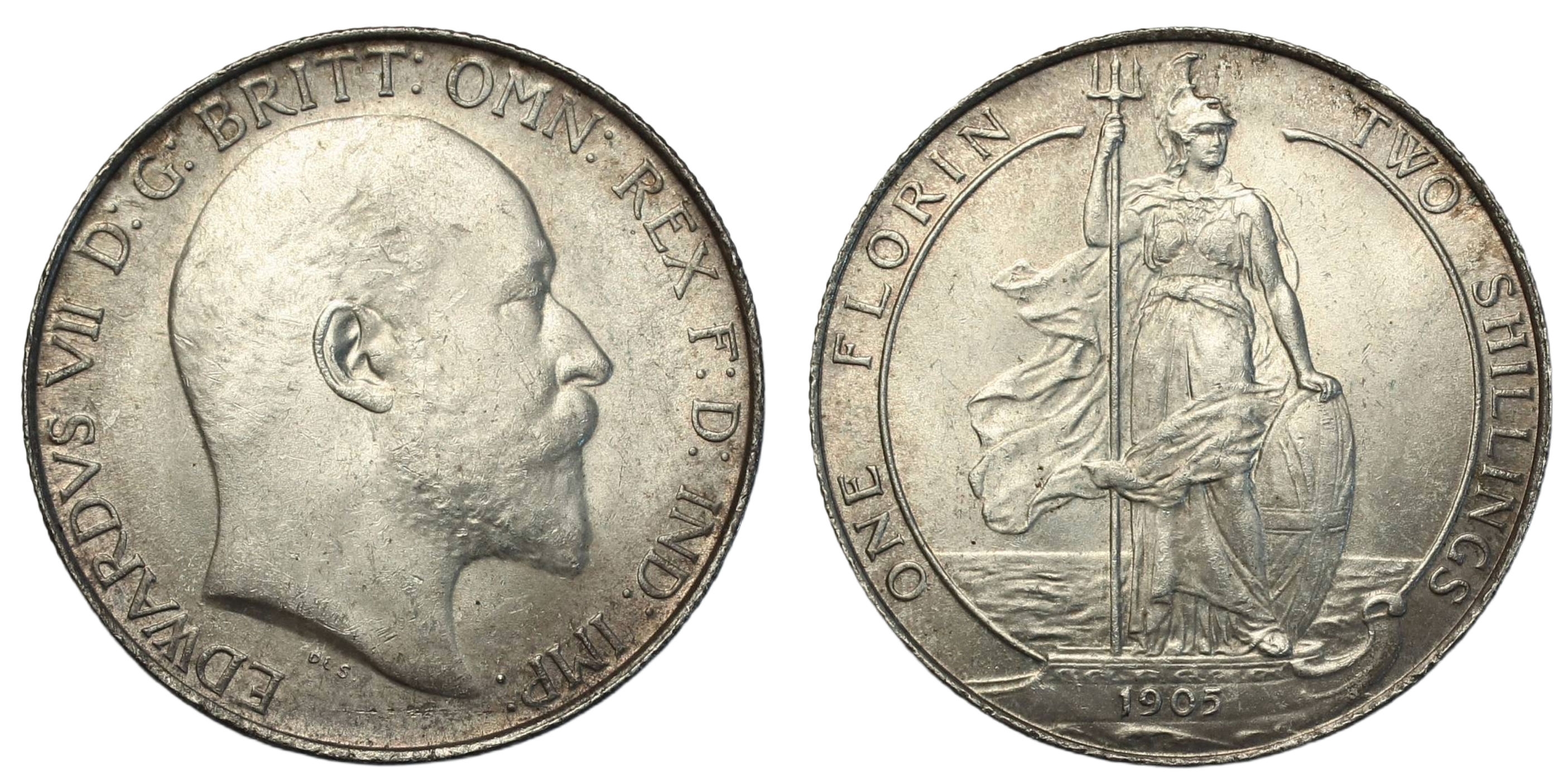 Florin, 1905, bare head right, rev. Britannia standing, date below, (SCBC 3981, ESC.3581). Cabinet toning and about extremely fine