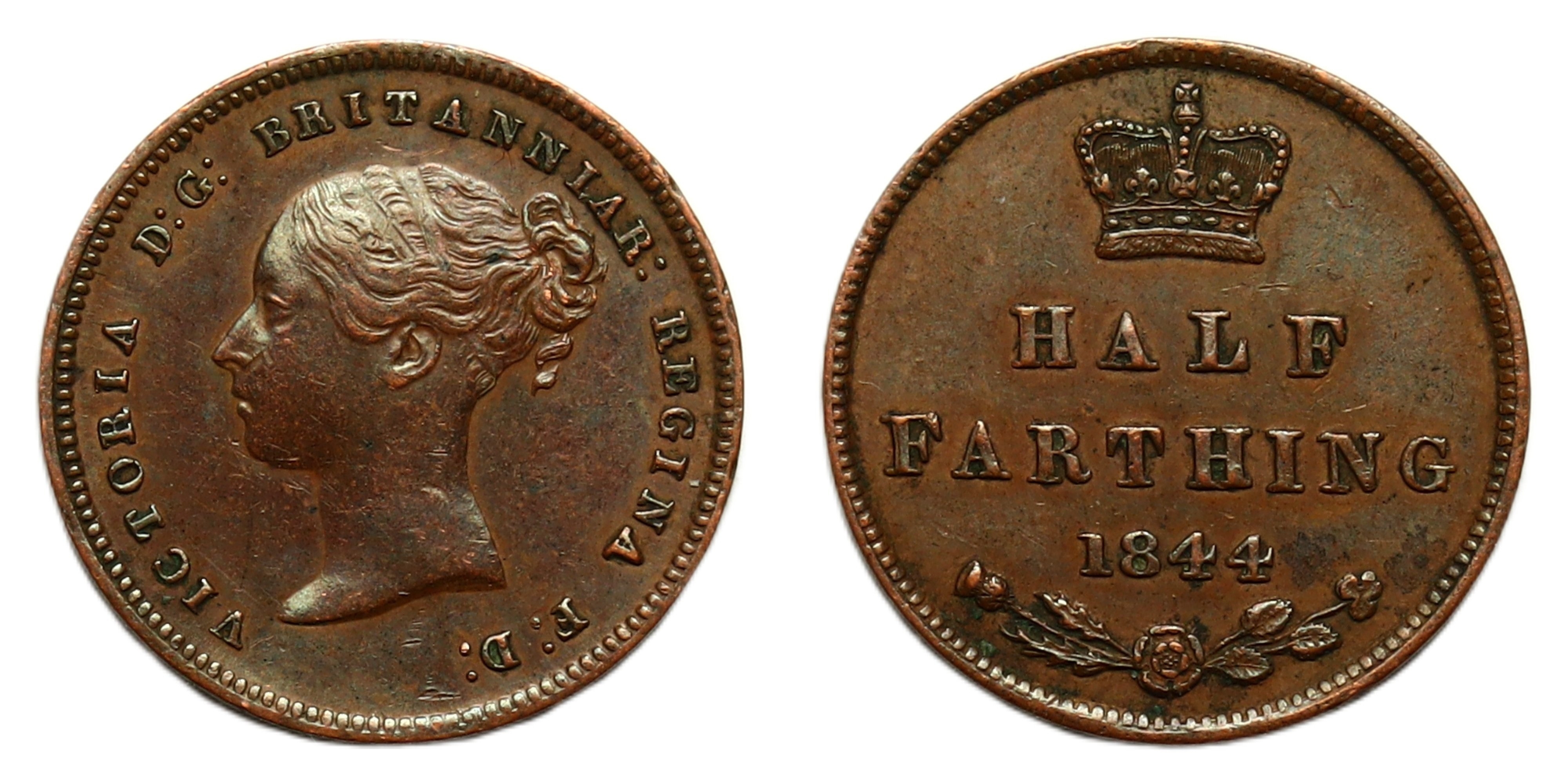 Half farthing, 1844, young head left, rev. crowned mark of value, date below, (SCBC 3951). Very fine